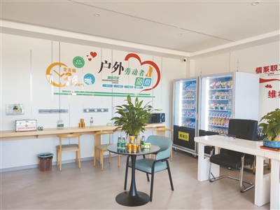 走进24小时智能化户外劳动者爱心驿站,映入眼帘的是温馨舒适的环境,沙发、休息桌椅、饮水机、报刊架、雨伞等设施一应俱全。24小时智能化户外劳动者爱心驿站借助科技手段,实现24小时全天候开放。环卫工人、园林工人、交通警察、快递员、外卖配送员、出租车司机、网约车司机、建筑工人等户外劳动者可通过人脸识别和自助式电子门禁系统便捷进入驿站,随时享受暖心服务。目前,24小时智能化户外劳动者爱心驿站实现充电、饮水、供氧、取暖、急救等10余项服务功能。