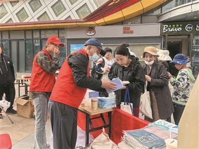 图为活动现场,工作人员向市民发放宣讲相关法律法规。拉萨融媒记者次仁卓玛摄