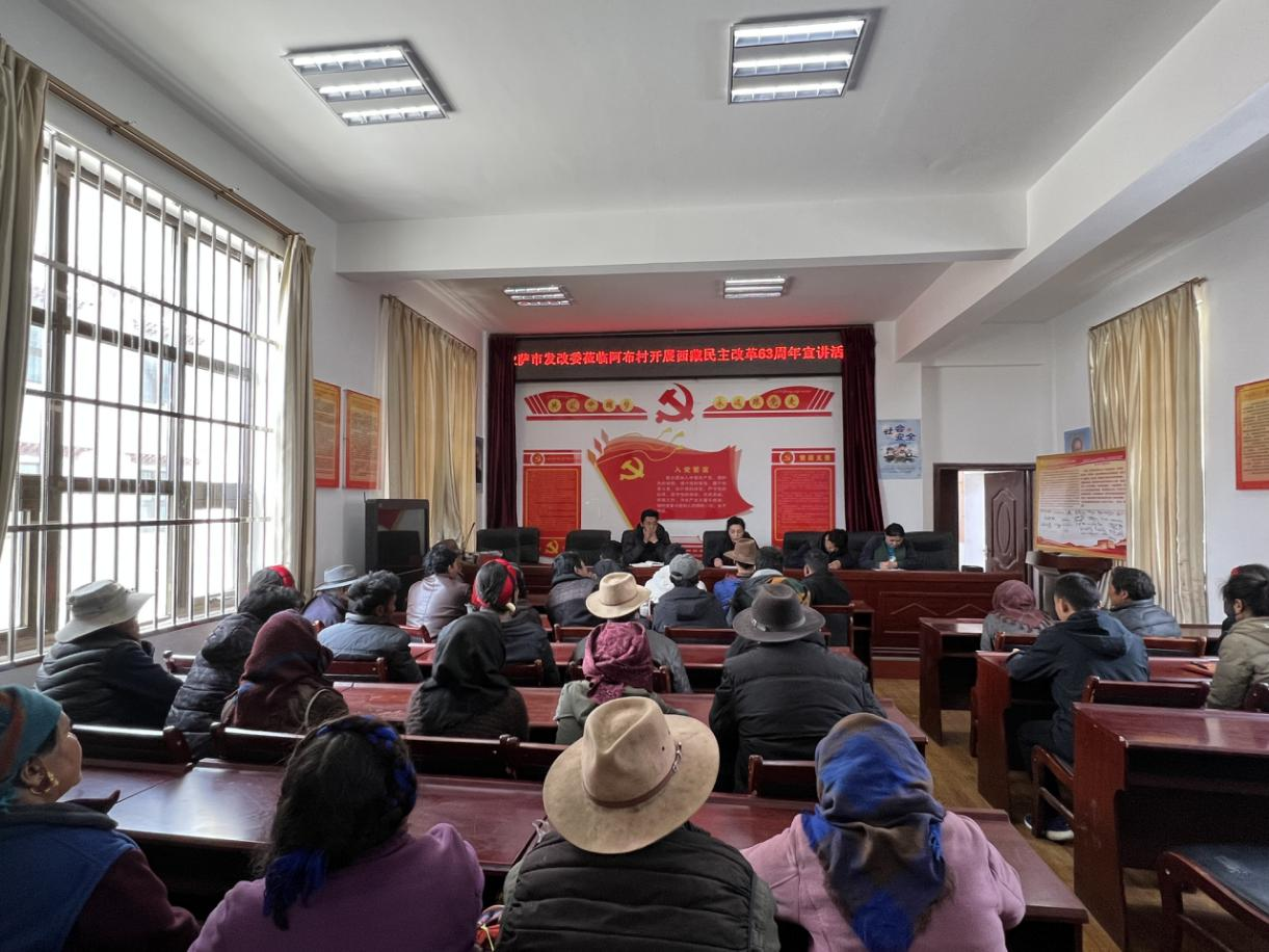 4月14日上午,拉萨市发展改革委组织宣讲组赴林周县阿朗乡阿布村、嘎列村开展“庆祝西藏民主改革63周年”专题宣讲活动,参加活动的农牧民党员有50余人,市发展改革委党组一级调研员、德吉卓嘎带队并担任宣讲员。