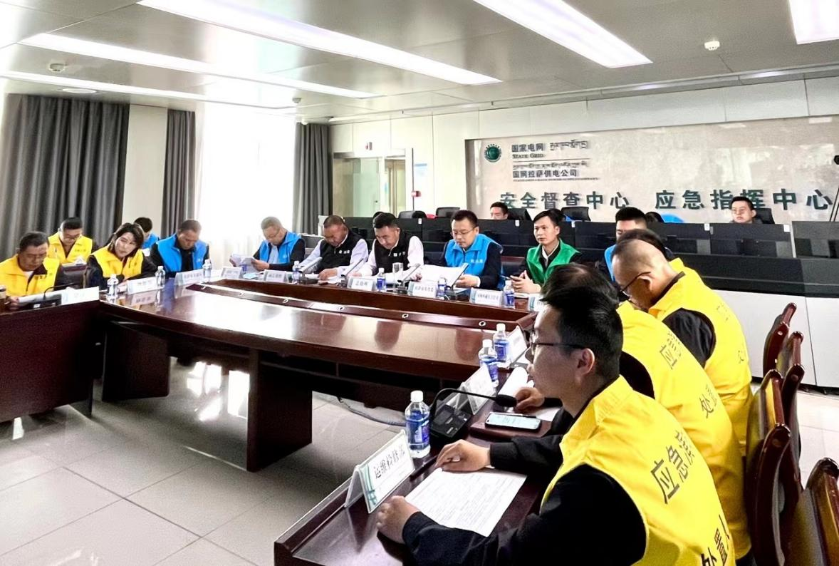 本次应急演练共分三个阶段:分监测预警阶段、应急响应阶段、应急结束阶段。采取“桌面推演”和“模拟实战”的方式,全面模拟拉萨市出现大风、雷电、持续强降雨等强对流天气,国网拉萨供电公司发布气象灾害橙色预警,发生国网拉萨供电公司大面积停电II级预警事件。从社会维稳、物资保障、电网抢修恢复、交通疏导、舆情引导等方面完整地展示了大面积停电事件先期处置、信息报告、应急预警、响应及处置等全流程。